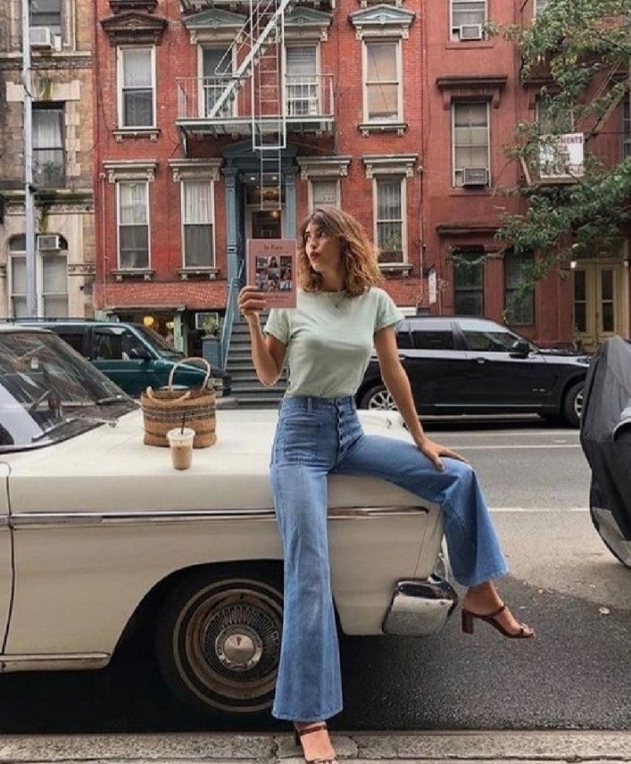 Back in the 90s the flared, wide legged denim jeans were everyone’s go-to style. And as we all know. They were highly preferred for their loose silhouettes. And as we see, it is coming back. We are amazingly rocking the look by pairing it with a nice top. Or maybe throw a jacket above that.